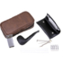 Качественный подарочный набор для трубокура немецкой марки Passatore. В состав набора входят: 1. Кожаная сумка на 2 трубки с отделениями для аксессуаров. Размер сумки: 20 х 10 х 6,5 см. 2. Съемный кисет для табака с внутренним отделом из хирургической резины для сохранения влажности. 3. Итальянская трубка от фабрики Cesare Barontini из Ливорно. Материал трубки — тосканский бриар, мундштук — акрил. Фильтр 9 мм. 4. Тампер-тройник. 5. Трубочная газовая зажигалка с боковым пламенем в металлическом корпусе. 6. Набор фирменных угольных фильтров и ершей для ухода за трубкой.