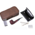 Качественный подарочный набор для трубокура немецкой марки Passatore. В состав набора входят: 1. Кожаная сумка на 2 трубки с отделениями для аксессуаров. Размер сумки: 20 х 10 х 6,5 см. 2. Съемный кисет для табака с внутренним отделом из хирургической резины для сохранения влажности. 3. Итальянская трубка от фабрики Cesare Barontini из Ливорно. Материал трубки — тосканский бриар, мундштук — акрил. Фильтр 9 мм. 4. Тампер-тройник. 5. Трубочная газовая зажигалка с боковым пламенем в металлическом корпусе. 6. Набор фирменных угольных фильтров и ершей для ухода за трубкой.
