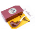 Авторская курительная трубка мастерской Ser Jacopo из серии Mastro Geppetto (Мастер Джузеппе, ит.). Серия посвящена всем итальянским резчикам по дереву в лице, пожалуй, самого известного из них — Мастера Джузеппе, создателя и отца Пиноккио из одноименной сказки Карло Коллоди. Серия оформлена в бело-желтых цветах парика, который носил Джузеппе, а вместо значка J (Jacopo) на мундштуке используется профиль Пиноккио из серебра 925 пробы. Также изображение самой известной итальянской куклы присутствует на серебряных кольцах и упаковке. Мундштук из цветного акрила. Фильтр 9 мм. Вес 65 гр. Длина трубки 18 см. Диаметр чашки 42 мм. Высота чашки 56 мм. Диаметр табачной камеры 20 мм., глубина 44 мм. В комплекте подарочная коробка, кисет для трубки и буклет компании Ser Jacopo. Ручная работа, единственный экземпляр.