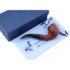 Легкая курительная трубка L’Anatra с отделкой Сэндбласт (когда мощная струя измельченного в песок стекла выбивает мягкие частицы корнекапа, оставляя твердые капилляры и придавая осязаемый объем натуральному рисунку бриара, площадь поверхности трубки при этом увеличивается, что способствует лучшему охлаждению чаши и более приятному «прохладному» курению, также снижается и вес трубки). Мундштук — акрил. На мундштуке нанесен символ компании — серебряная голова утки и на чубуке — девиз L’Anatra dalle uova d’oro — «Утка несущая золотые яйца» и Hand made in Italy. Фильтр 9 мм. Вес 43 гр. Длина трубки 15 см. Диаметр чашки 44 мм. Высота чашки 47 мм. Диаметр табачной камеры 20 мм., глубина 34 мм. Фирменный кисет и подарочная коробка прилагаются. Ручная работа, единственный экземпляр.