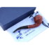 Легкая курительная трубка L’Anatra с отделкой Сэндбласт (когда мощная струя измельченного в песок стекла выбивает мягкие частицы корнекапа, оставляя твердые капилляры и придавая осязаемый объем натуральному рисунку бриара, площадь поверхности трубки при этом увеличивается, что способствует лучшему охлаждению чаши и более приятному «прохладному» курению, также снижается и вес трубки). Мундштук — акрил. На мундштуке нанесен символ компании — серебряная голова утки и на чубуке — девиз L’Anatra dalle uova d’oro — «Утка несущая золотые яйца» и Hand made in Italy. Фильтр 9 мм. Вес 43 гр. Длина трубки 13 см. Диаметр чашки 36 мм. Высота чашки 46 мм. Диаметр табачной камеры 20 мм., глубина 40 мм. Фирменный кисет и подарочная коробка прилагаются. Ручная работа, единственный экземпляр.