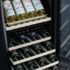 Винный шкаф Meyvel MV73-KBF2 – роскошная новинка в сфере качественного хранения и дозревания вин! Благодаря современному продуманному дизайну, он шикарно вписывается в любой интерьер и пользуется большой популярностью как в ресторанном бизнесе, так и у винных коллекционеров. Наличие разных температурных зон позволяет помещать в него красные, белые и даже игристые вина. Стильный и функциональный винный шкаф с компрессорным охлаждением позволит Вам в любой момент насладиться неповторимым вкусом свежего и прохладного вина. Он с точностью имитирует условия настоящего винного погреба: диапазон влажности воздуха 50-80%, настраиваемая температура верхней зоны от +5 до +10 °C, нижней зоны от +10 до +18 °C, защита от ультрафиолетовых лучей за счет специального стекла и отсутствие вибраций, благодаря крепким полкам из массива бука Шикарный винный шкаф станет гордостью для настоящих ценителей благородного напитка. Современный винный шкаф MV73-KBF2 – инновационное решение проблемы качественного хранения вина. Расширенная функциональность, изысканный дизайн, полноценная имитация условий «винного погреба» – всё это винный шкаф MV73-KBF2. Изысканный дизайн модели делает её абсолютным выбором большинства: корпус MV73-KBF2 выполнен из стали окрашенной в чёрный цвет, стекло с шелкографией полностью покрывает дверь. Современная технология освещения позволит Вам в любое время эффектно продемонстрировать Вашу винную коллекцию гостям. Каждая деталь модели гармонично дополняет друг друга, делая винный шкаф универсальным под любые стили интерьера. Благодаря продуманному внутреннему исполнению и съемным полкам Вы сможете размещать бутылки любого объема. Внутреннее пространство рассчитано на хранение до 73 бутылок типа Бордо (0,75 л). При желании можно извлечь несколько полок и разместить большее количество бутылок. Габариты модели позволяют разместить ее максимально функционально в любой зоне: кухне, столовой, гостиной. Для размещения винных бутылок, шкаф оснащен 11 крепкими полками из массива бука: выдвижные (8), выдвижные полуполки (2), выдвижная демонстрационная (1). С помощью демонстрационной полки вы сможете выставить свои самые лучшие вина на показ. Предусмотрена возможность установки специальной полки для фужеров. Полка устанавливается внутри шкафа и имеет 3 углубленных направления для размещения бокалов на ножке. Вы сможете размещать на полках бокалы для белых и молодых красных вин, а также фужеры для игристых вин. Продемонстрируйте свои фирменные бокалы и фужеры гостям. Полка приобретается отдельно. Винные бутылки, расположенные внутри шкафа, надежно защищены от вредоносных ультрафиолетовых лучей двойным стеклом, установленным в дверцу. В нижней части винного шкафа установлен съемный резервуар для воды, который предназначен для эффективного поддержания уровня влажности. Равномерное охлаждение содержимого шкафа достигается благодаря качественной циркуляции воздуха. С помощью современной сенсорной панели управления Вы сможете быстро и легко управлять всеми функциями шкафа. Практически бесшумная работа винного шкафа Meyvel MV73-KBF2 достигается благодаря установленному современному и энергоэффективному компрессору. Модель оснащена многоступенчатой системой гашения вибраций, обеспечивая полный покой Вашей винной коллекции. Для того, чтобы цирку